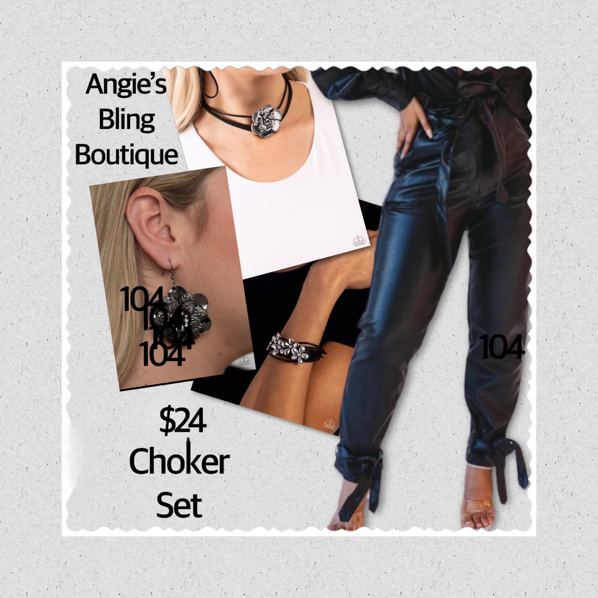Sold as one individual choker necklace. Includes one pair of matching earrings.